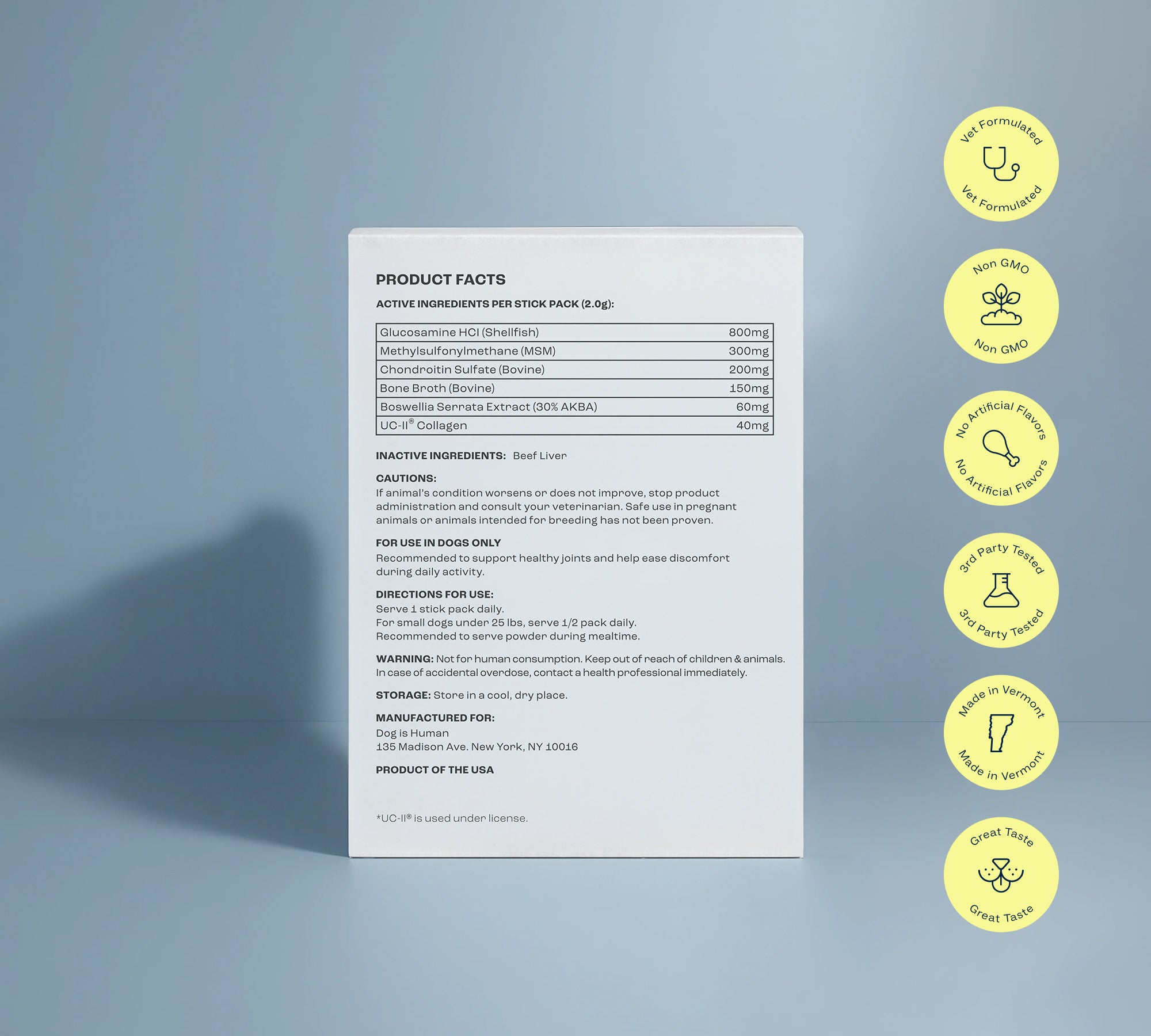 Each ingredient in MULTIFLEX™ is backed by thousands of research journals and clinically-proven to help the joints of senior dogs. Our powder packets are dense with effective nutrients.